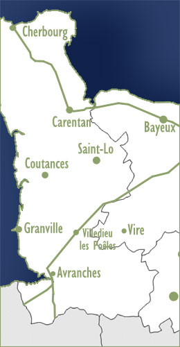 We generally cover an area that is 100km radius from Saint Lô. We cover Manche, Calvados and Orne and even into Ile-et Vilaine in Brittany.
